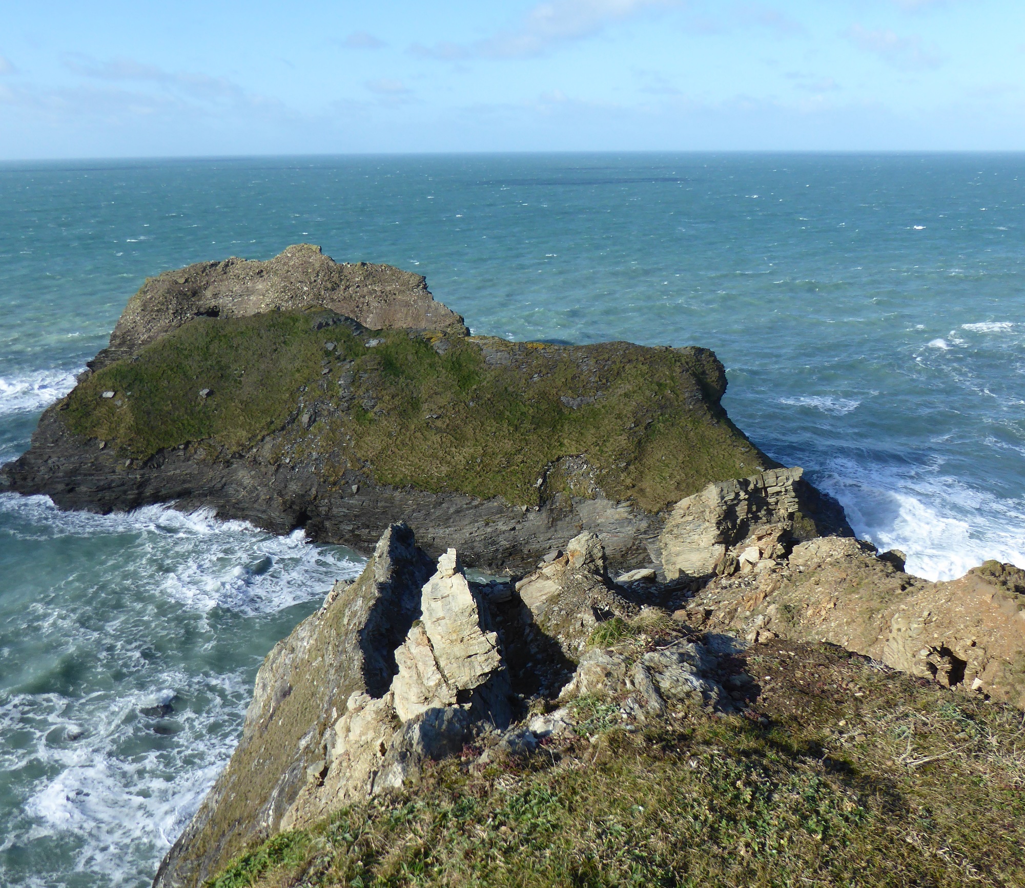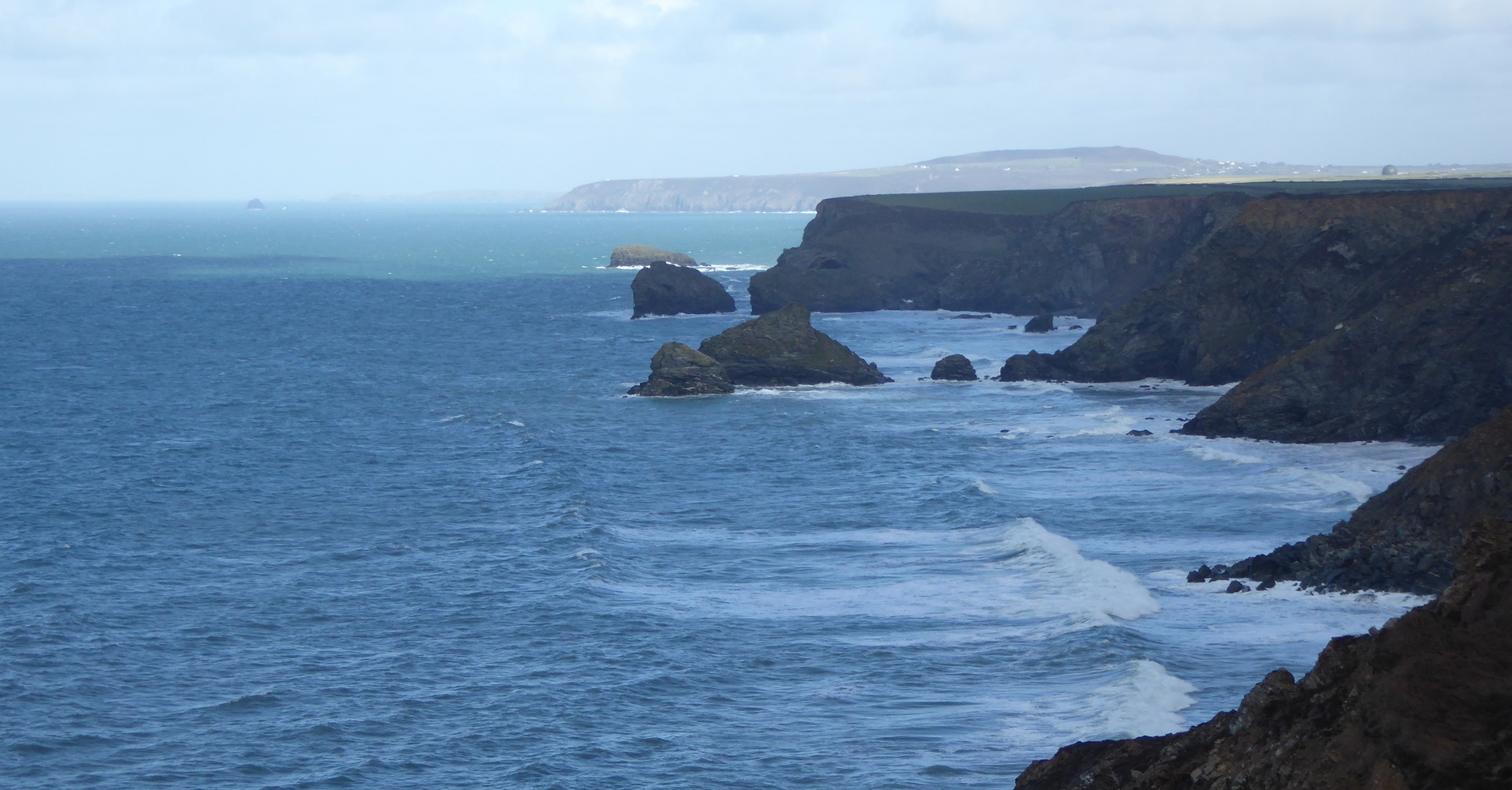 There followed a long stretch of easier walking than the previous days along grassy cliff tops. Although the wind was blustery the weather was clear with bright blue skies.