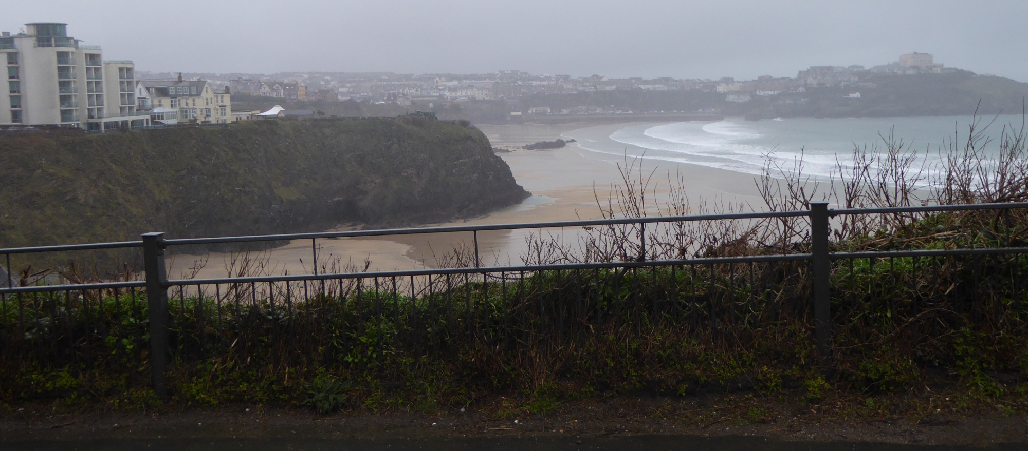 Out on the cliff tops watching the waves lashing the rocks was like a washing machine in a frenzy. I then dropped down to Watergate Bay, with its hotel complex and a few houses. It has a long sandy bay where surfers and dog walkers come to play.