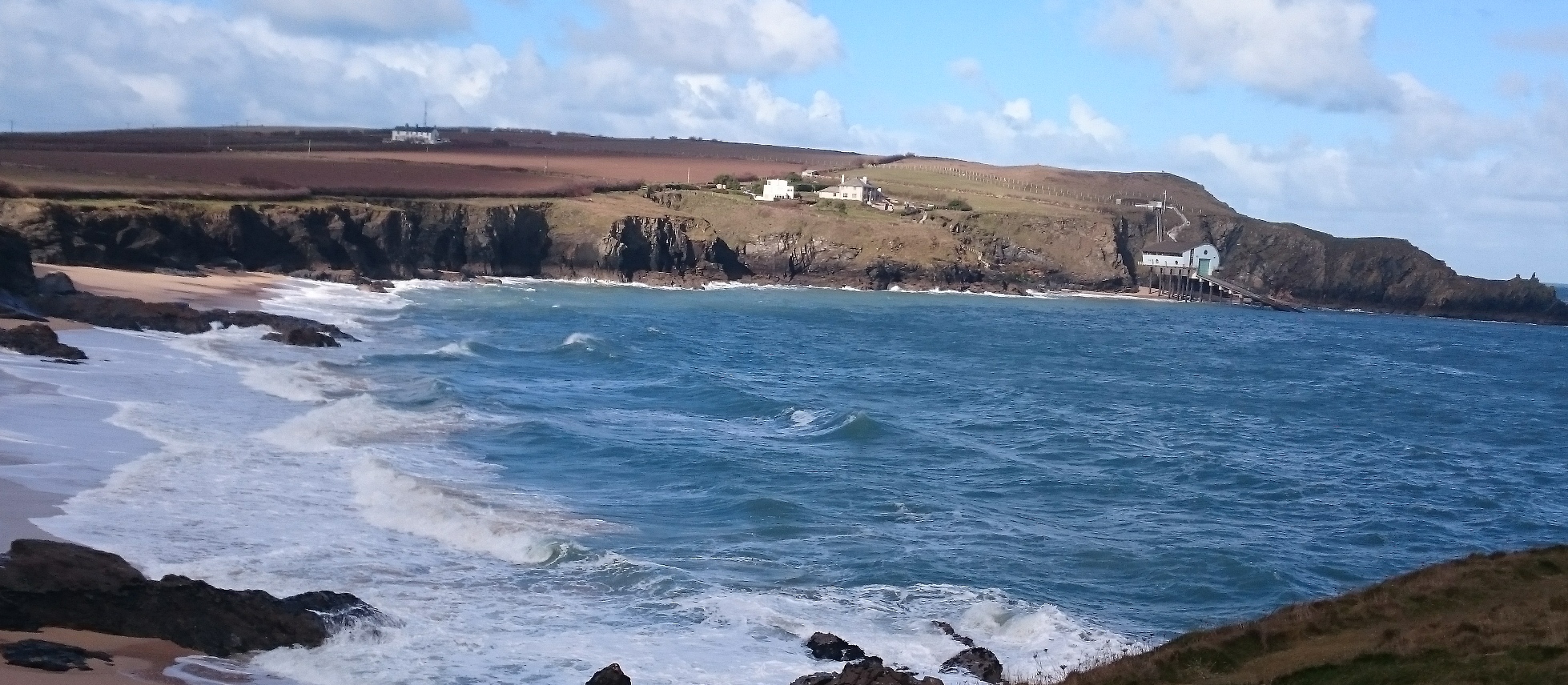 I round Trevose Head with good views all around. The strong wind made it difficult at times to make any headway. I head down into yet another sandy bay, Harlyn. All these bays would be full in the summer, but today, hardly anyone to be seen.