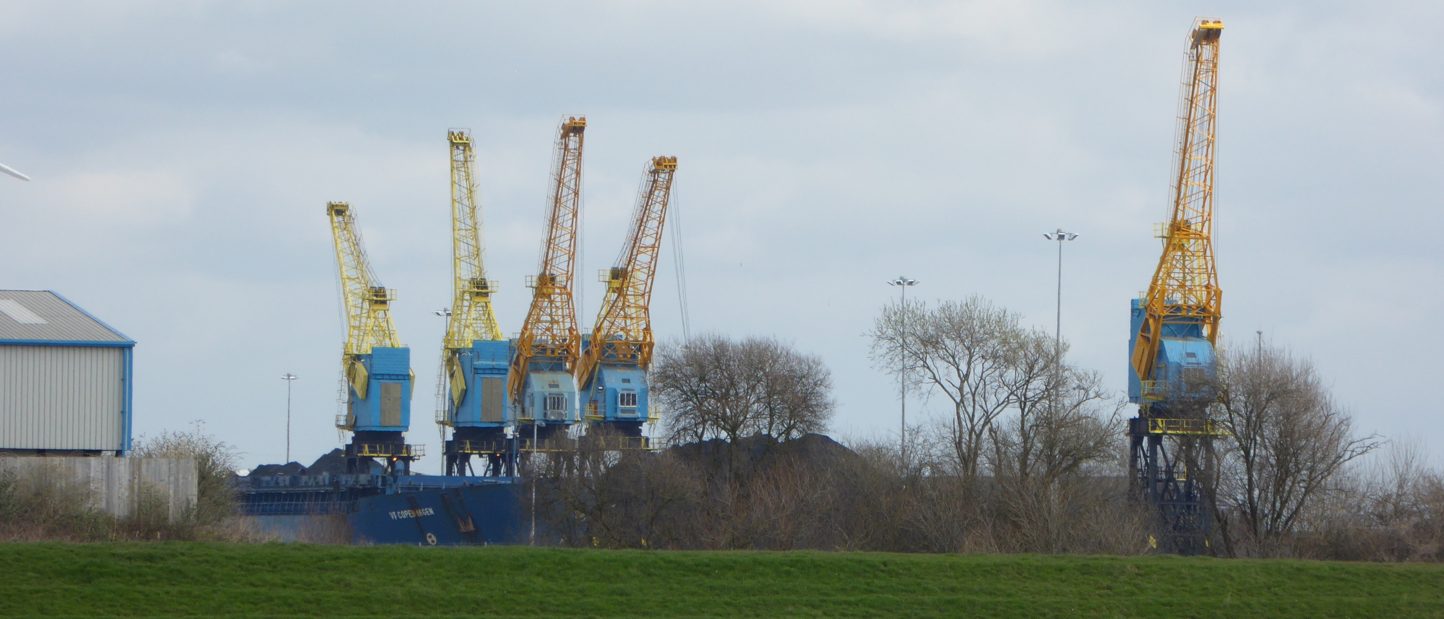 I make my way down to the mouth of the estuary on the other side from the Power Station I passed yesterday. I look back to see several cranes saluting my farewell.