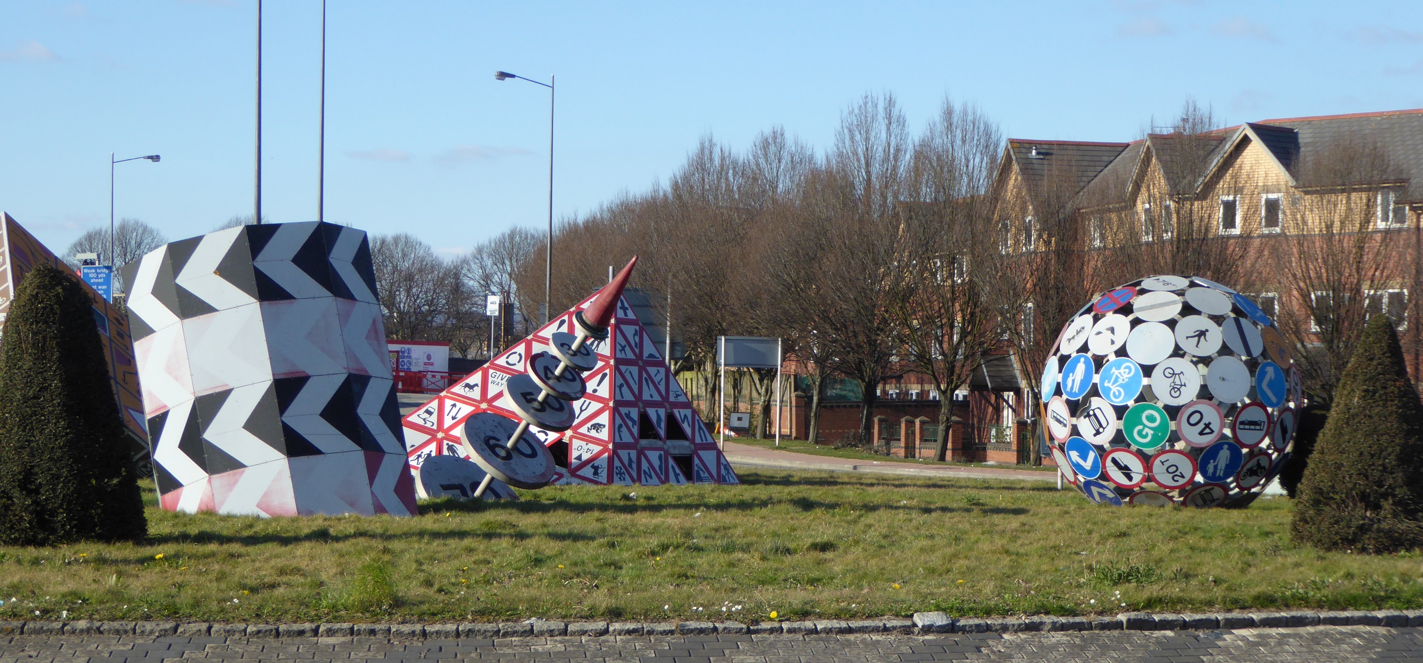 Do you ever feel that our roads are cluttered with too many signs. When you are in an area you don’t know and worried about which way to go or worse getting a penalty ticket for going where you shouldn’t. The Magic roundabout, near Atlantic Wharf, is a great way to use up those road signs.