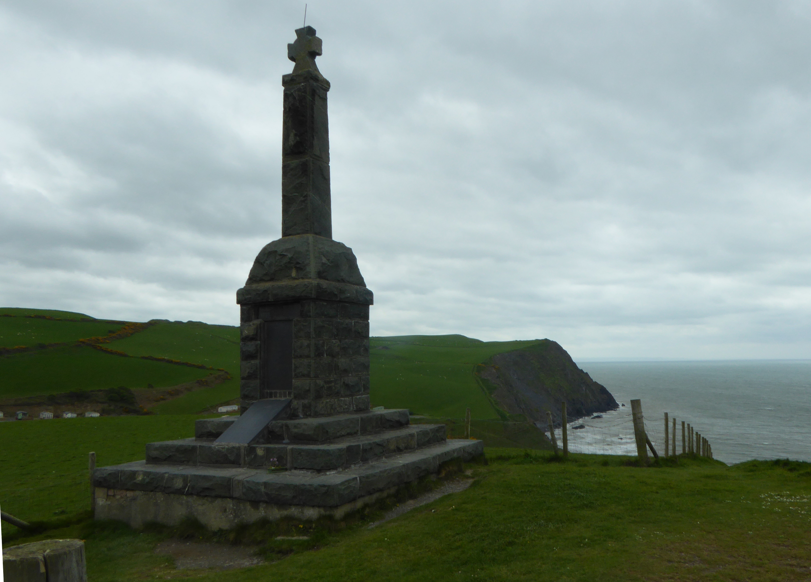 I approach Borth where I had been staying the last few nights. I come to an imposing war memorial on the cliffs overlooking Borth. The town itself has one long street through the centre with a high sea wall between the beach and road. The beach itself is mainly shingle.