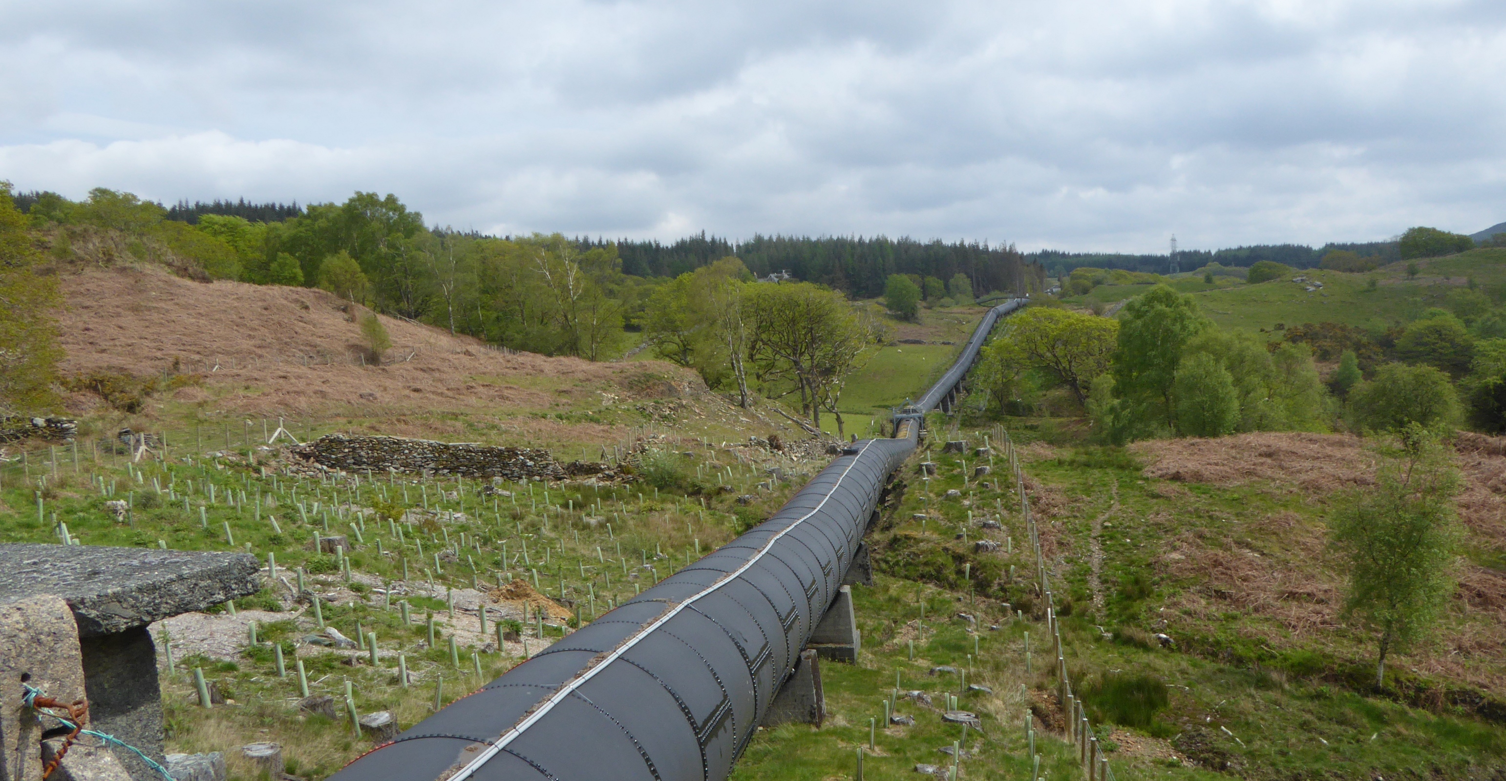 With my step quickened, I eventually drop down out of the woods and join the road. I did notice big bore pipes trailing across the far hillside going off into the distance, They look like those water slides you see at waterparks.