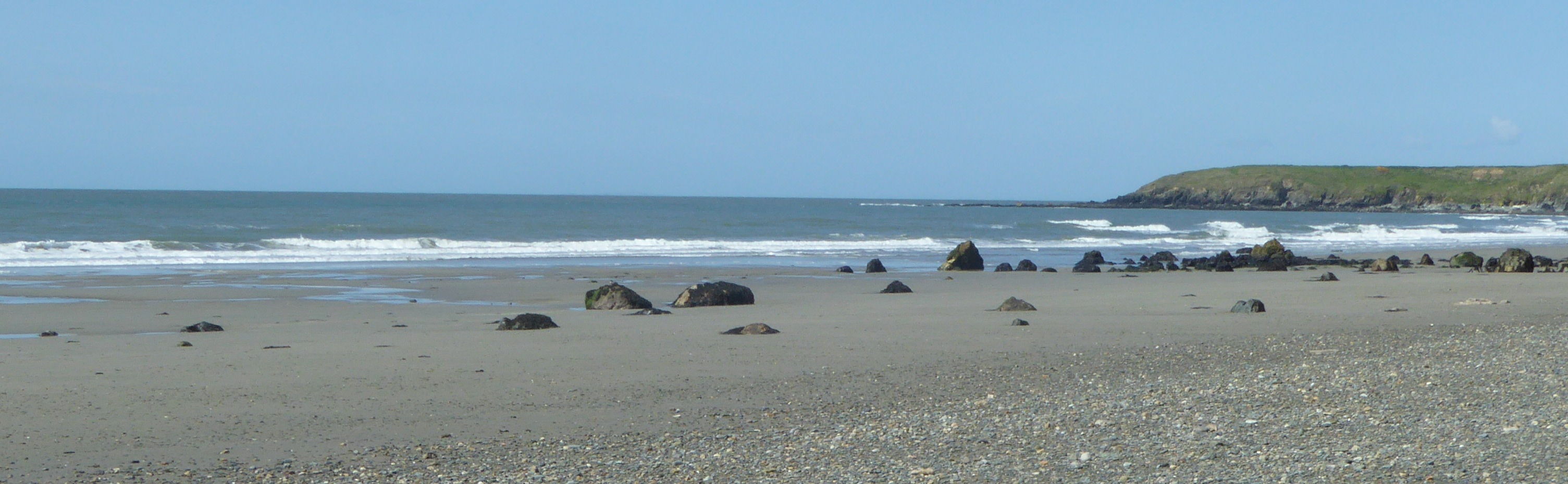 I leave Aberdaron and make my way up the road to Anelog where I join the coast again. As I walk along the grassy cliff tops I soon come to a wide sandy beach with an interesting name of whistling sands.