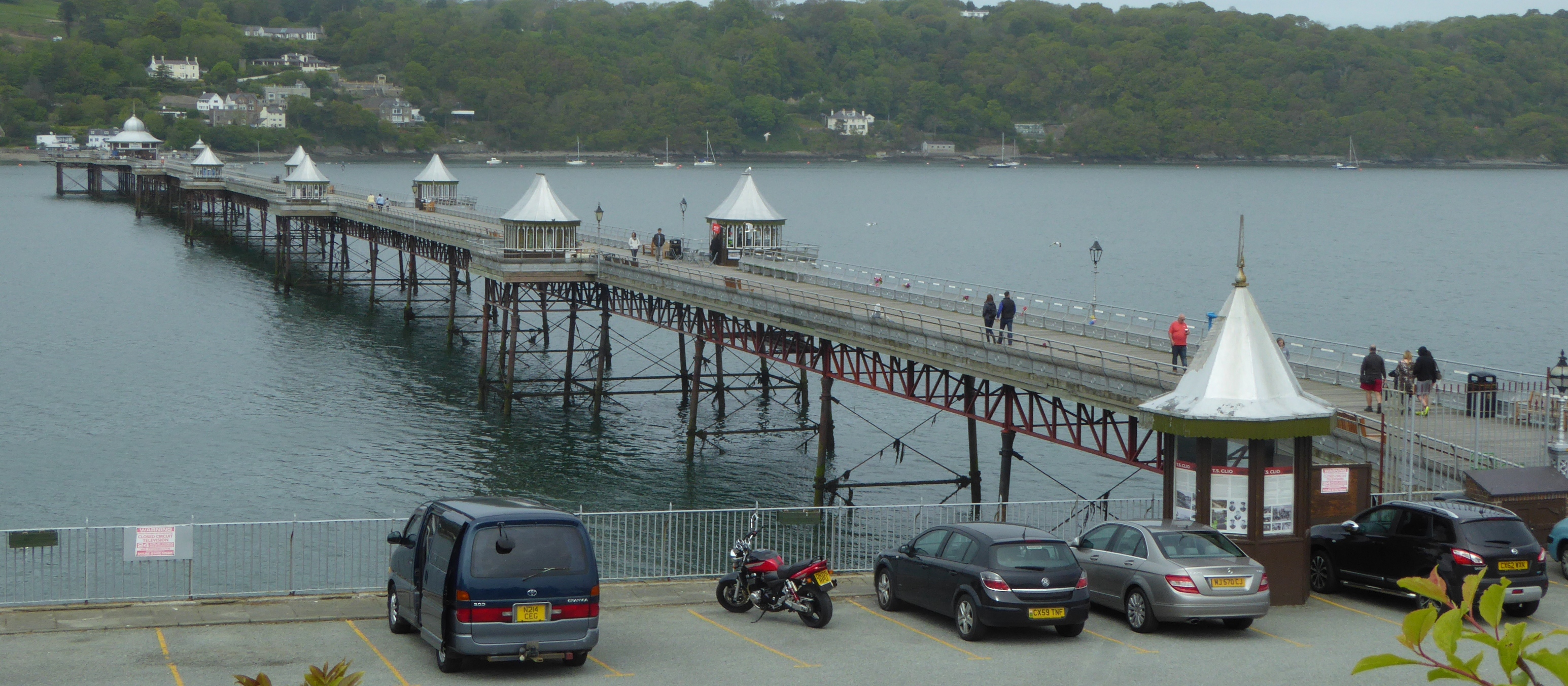 Menai Suspension Bridge, the second one, looms up. This is a road bridge built by Thomas Telford and now has World Heritage status. I continue along the coast to Garth which has a pier. The Victorian pier has a series of octagonal towers or shelters down each side. It is all rather pleasant and not over commercialised.