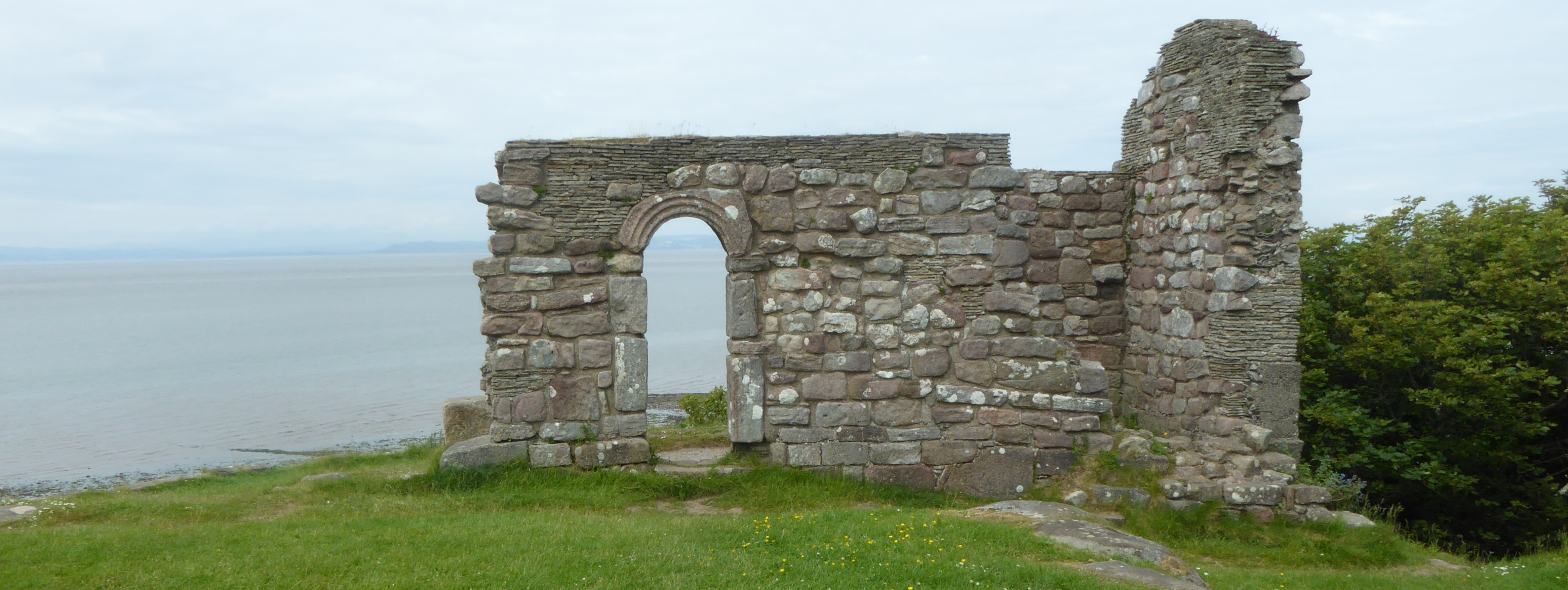 I stop for lunch at St Patrick’s Chapel, a ruin that stands on a headland above Heysham. There are some stones where you can see 6 tombs cut out of the stone.