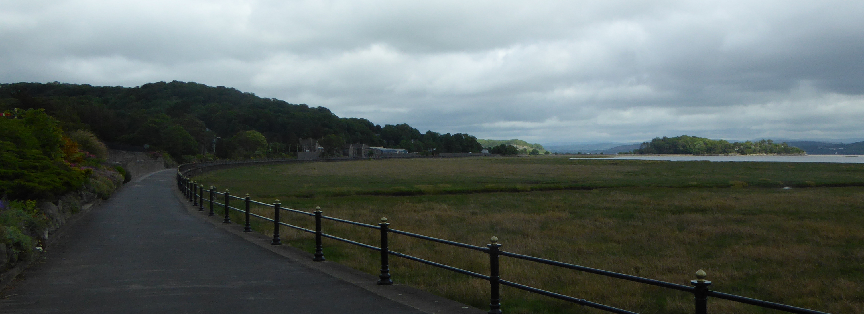 I was expecting a big sandy beach at Grange-over-Sands but all I got was grass and marsh. I walk along the promenade and paths alongside the railway line to Kent Bank and then the road to Cark where I finish today.