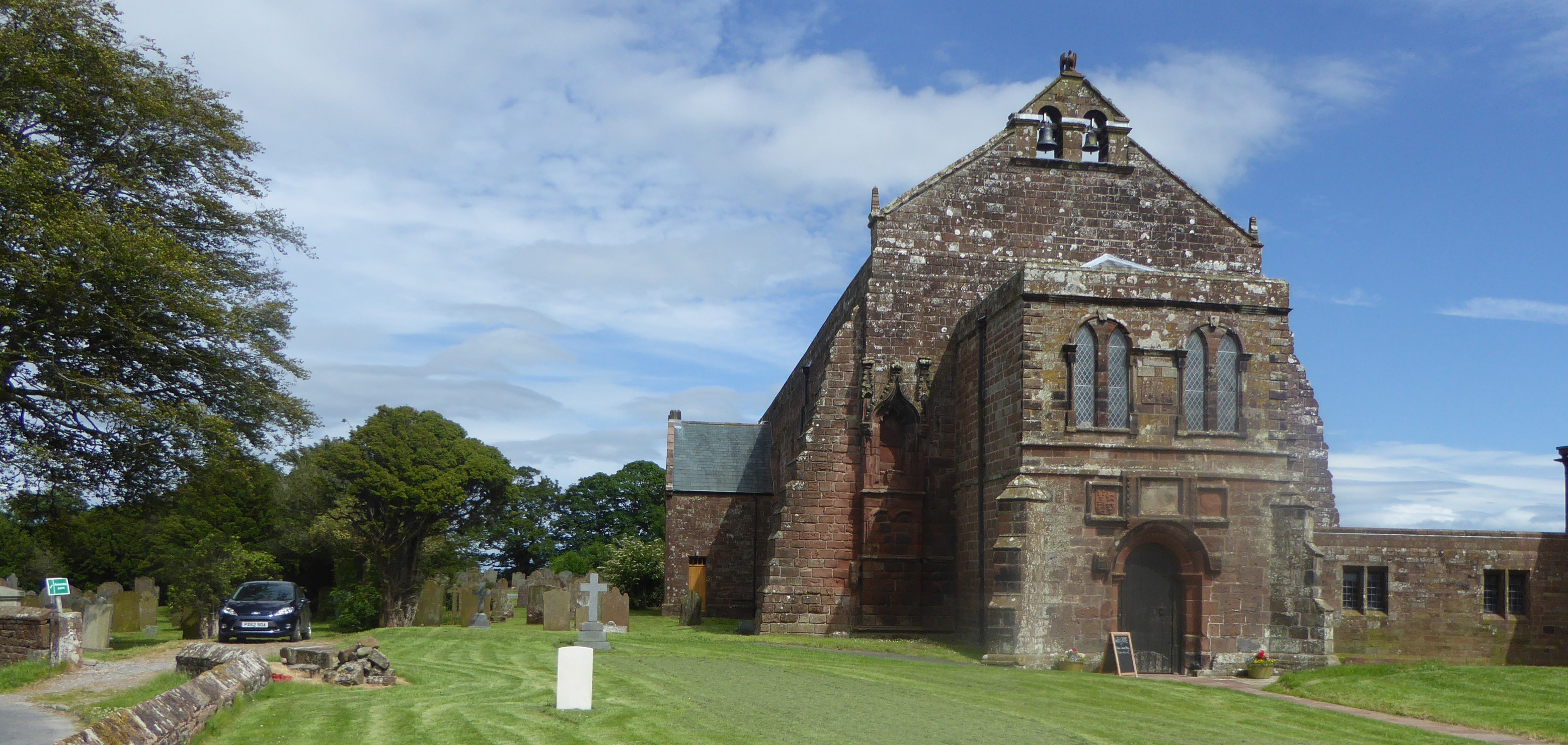 At Abbeytown I come to St Mary’s Church, part of Holmcultram Abbey which my map says is a ruin. The roof was destroyed by fire in an arson attack in 2006 but has now been restored. It all looks very impressive