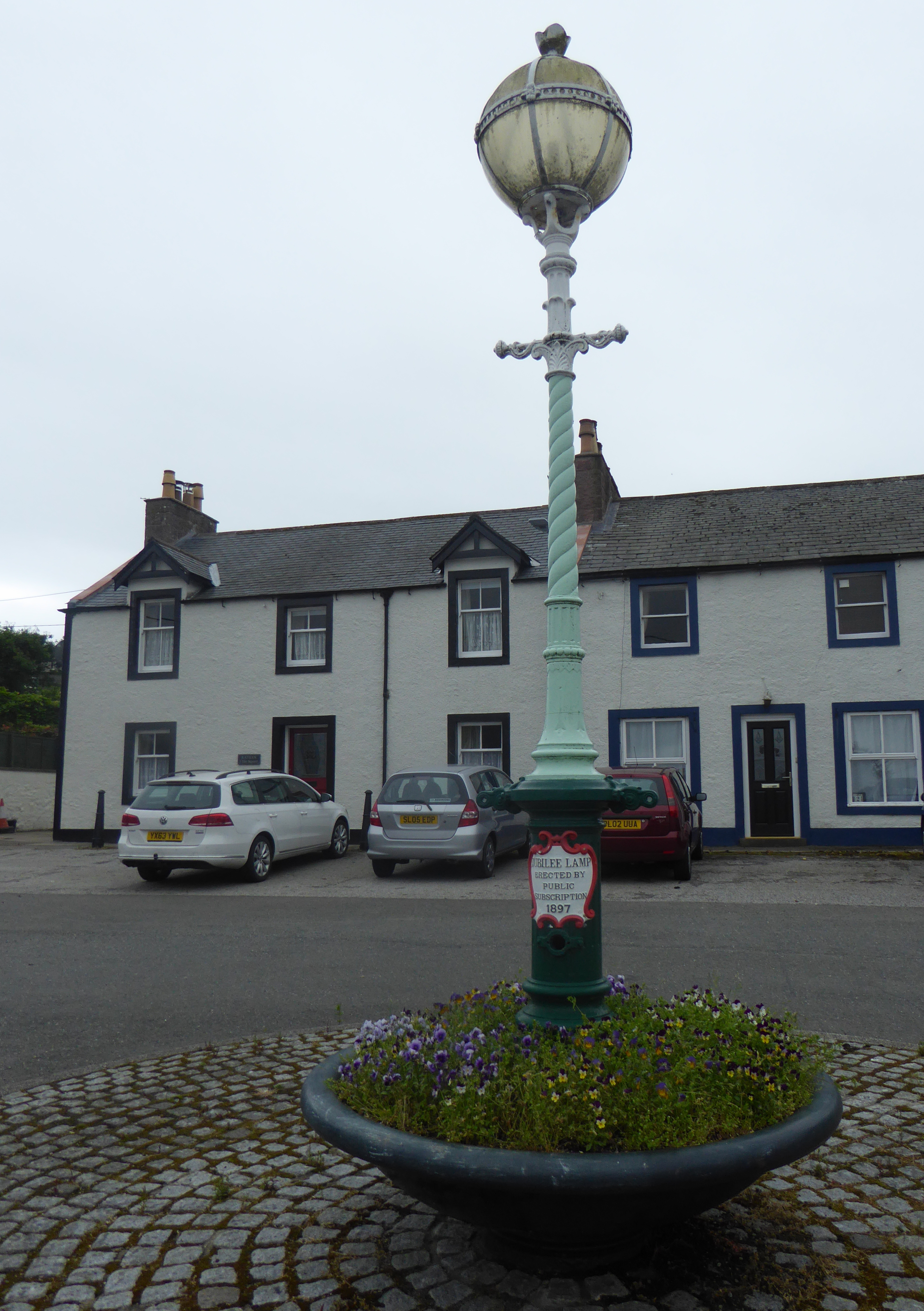 After a struggle I make my way up past Barlocco Hill to the road which I follow to Rerrick with its Queen Victoria Jubilee lamp in the middle of the village. Just to the north of here they hold the Wickerman Festival, a sort of mini family-friendly Glastonbury event which has been going since 2001. The festival gets its name from the horror film “The Wicker Man” which used many locations in the area. The main event is the burning of a giant Wickerman built by local craftsmen.
