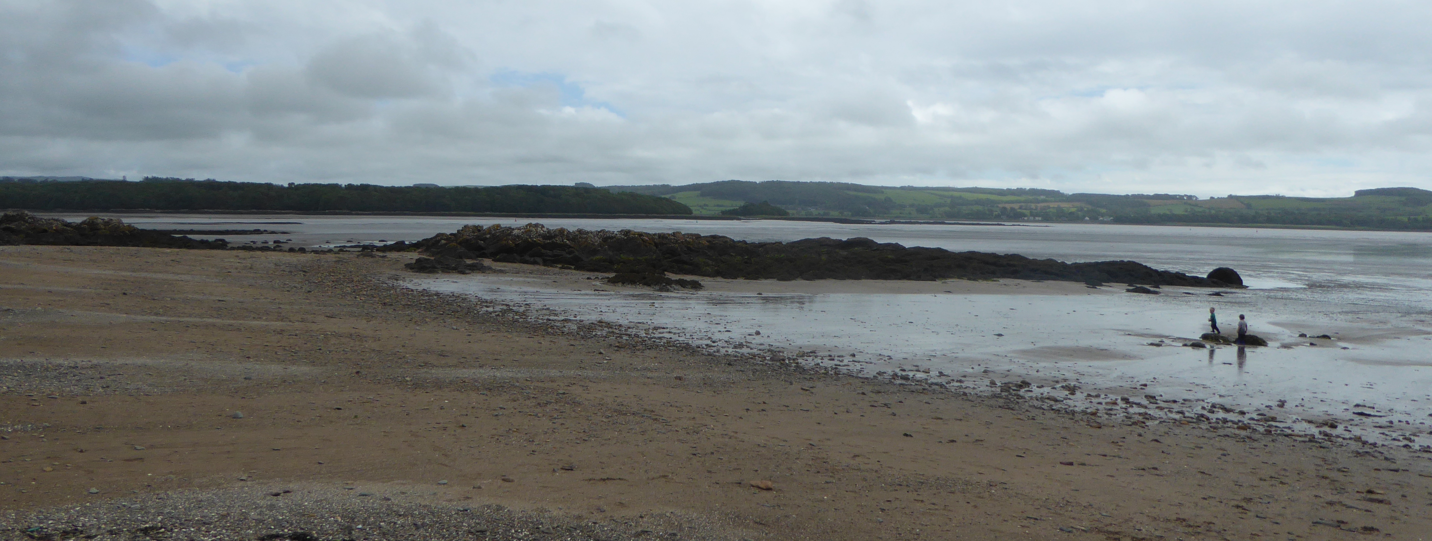 I leave Kirkcudbright by the Dee Bridge and follow the road down the other side of the estuary. As I walk past Goat Well Bay, I come across a plaque that tells of a schooner called the Monreith that went down here whilst trying to take shelter. Some timbers of the boat can be seen at low tide.