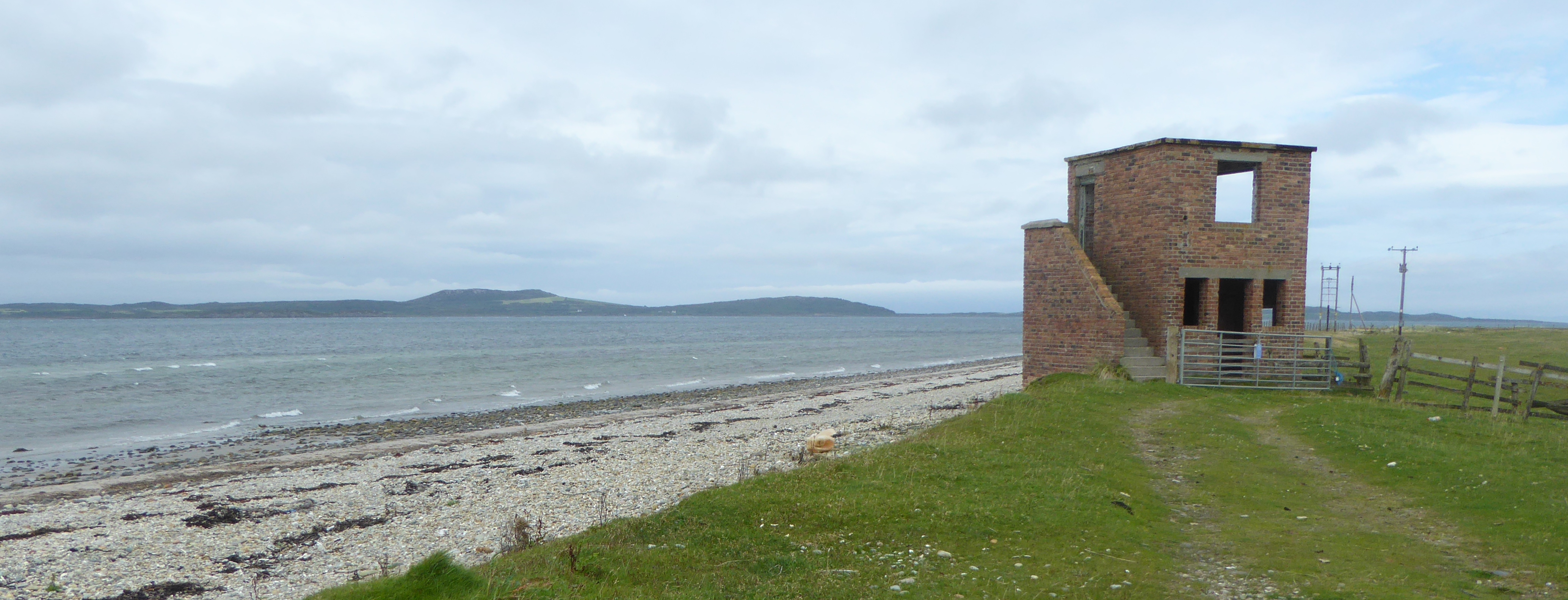 The next three miles is a lovely beach walk to Rhunahaorine Point. I pass a Caravan site on the way. At the point is a quadrant tower, part of the Balure range, a live Word War II bombing and firing range.