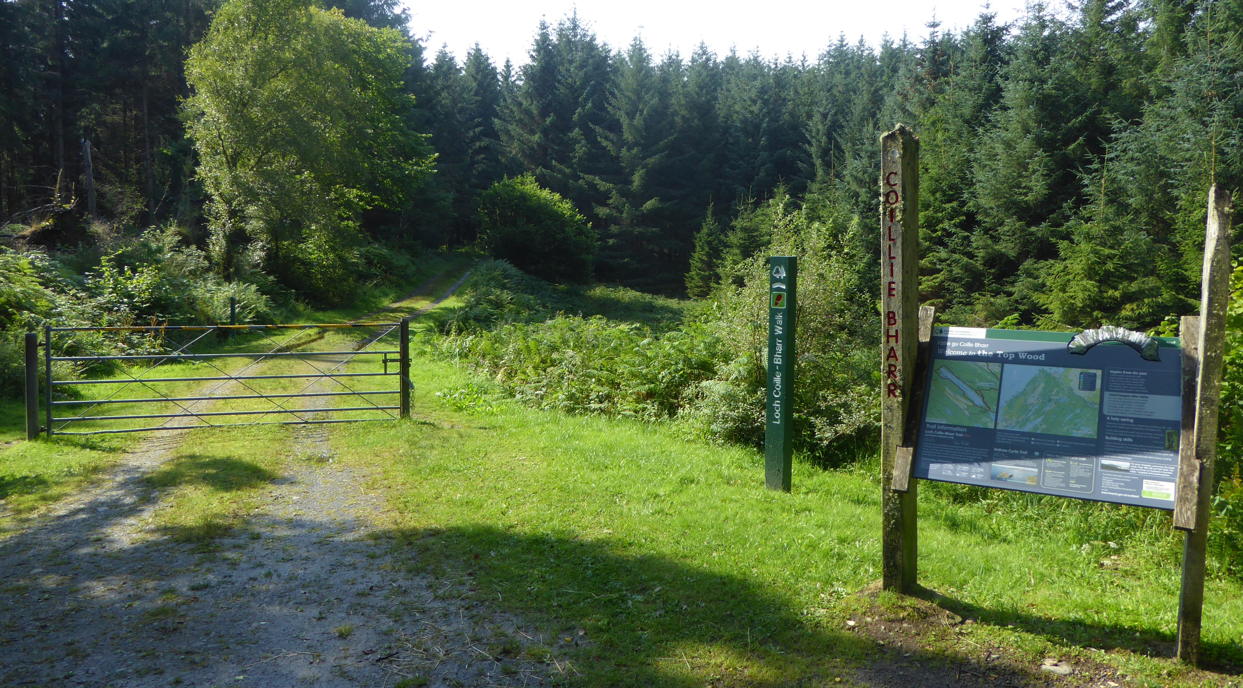 At Barnlausgan there is an information centre giving a lot of information about beavers. They have set up a beaver trail around Dubh Loch and the top of Loch Collie-Bharr. Beavers are shy creatures, the best time to see them is at dusk. You might see evidence of their endeavours because they are workaholics, stripping bark from trees and building dams.