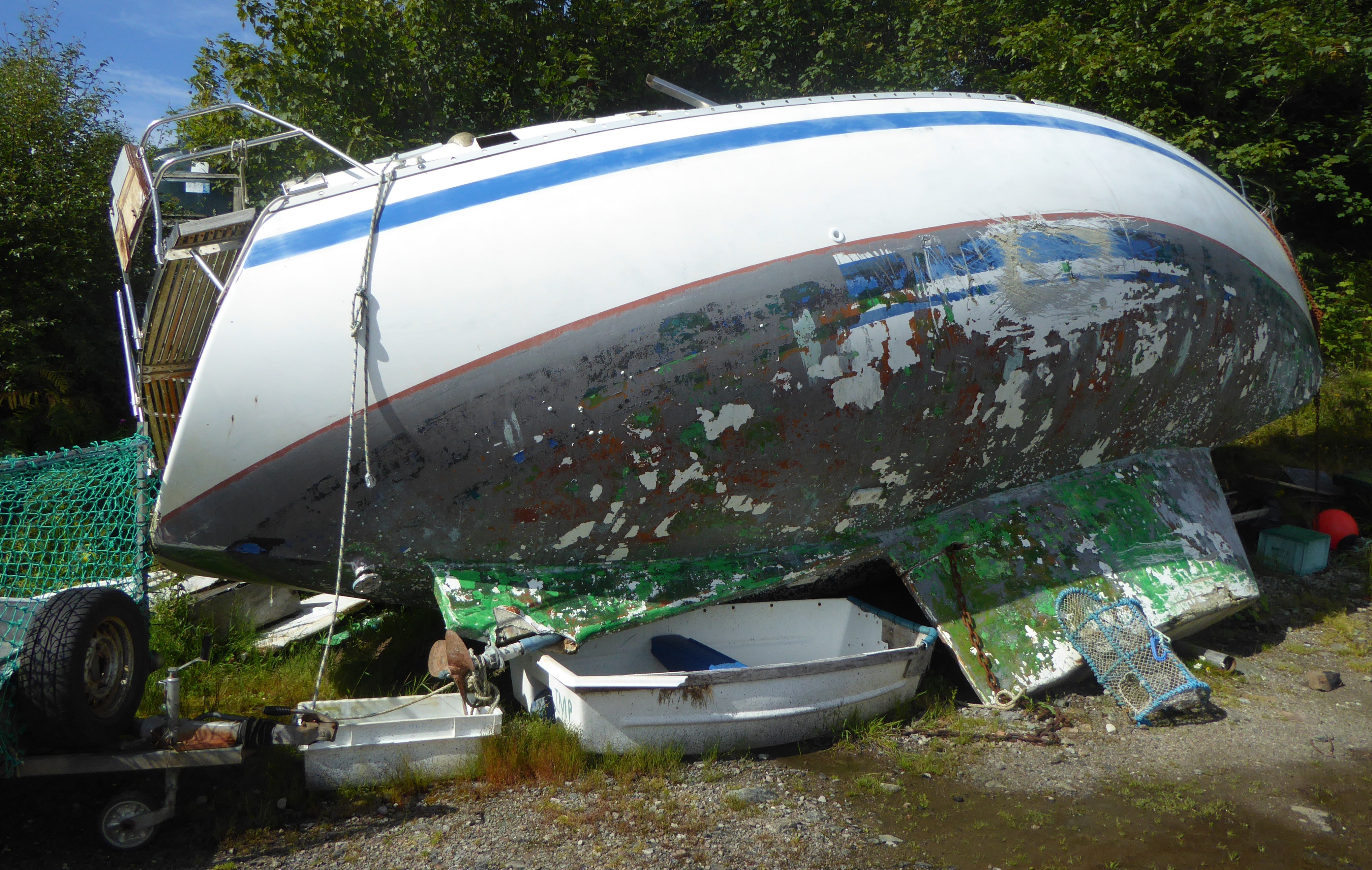 Carsaig Bay sits just to the west Tayvallick with great views to the Isle of Jura. It has a sandy beach and a few boats. Some of the look as if they will never be sailed in again.