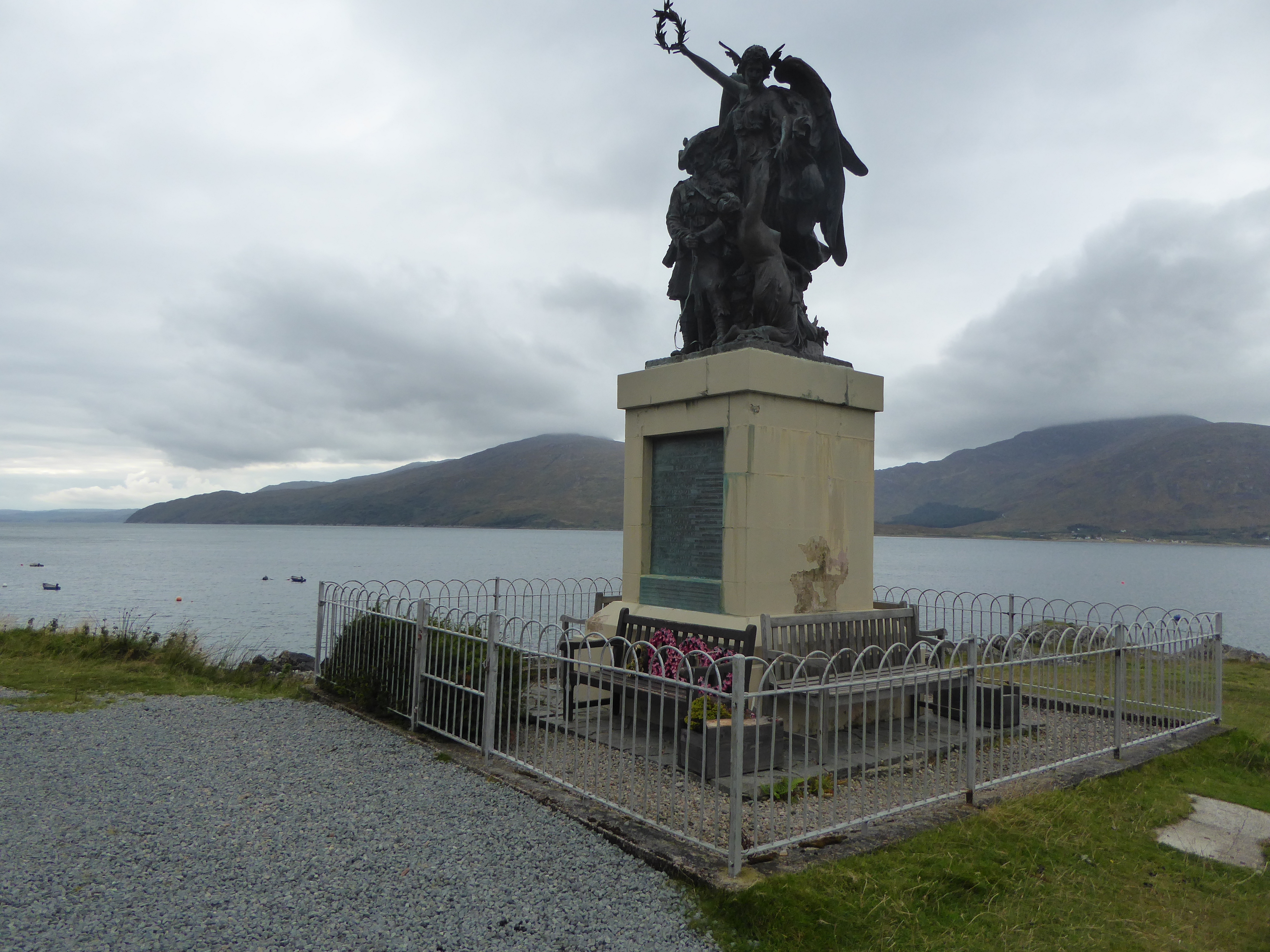 I pass through the sheltered bay at Eilenreach and onto Glenelg. This village lies across the Sound of Sleat from the Isle of Sky. I pass the rather striking War Memorial and on into the village where I finish for today.