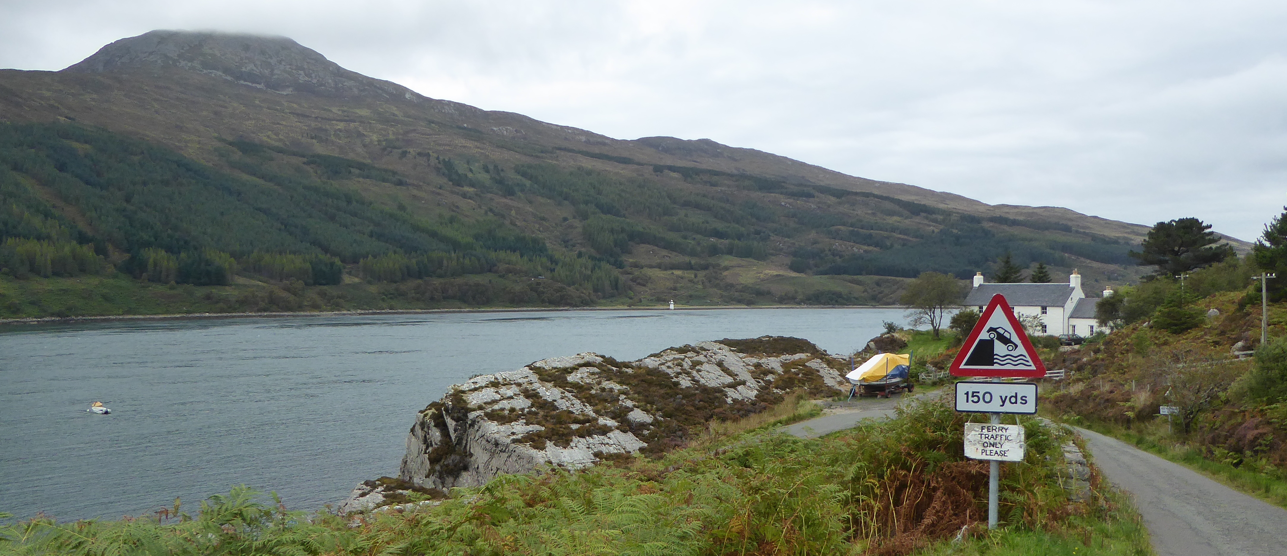 I join a road that takes me to the Glenelg ferry which is run during the summer months by the community to Kylerhea on the Isle of Skye. It is one of the last turntable ferries and carries about six cars. At Kylerhea there is a short walk to an Otter Haven with a hive and binoculars to look out for otters.
