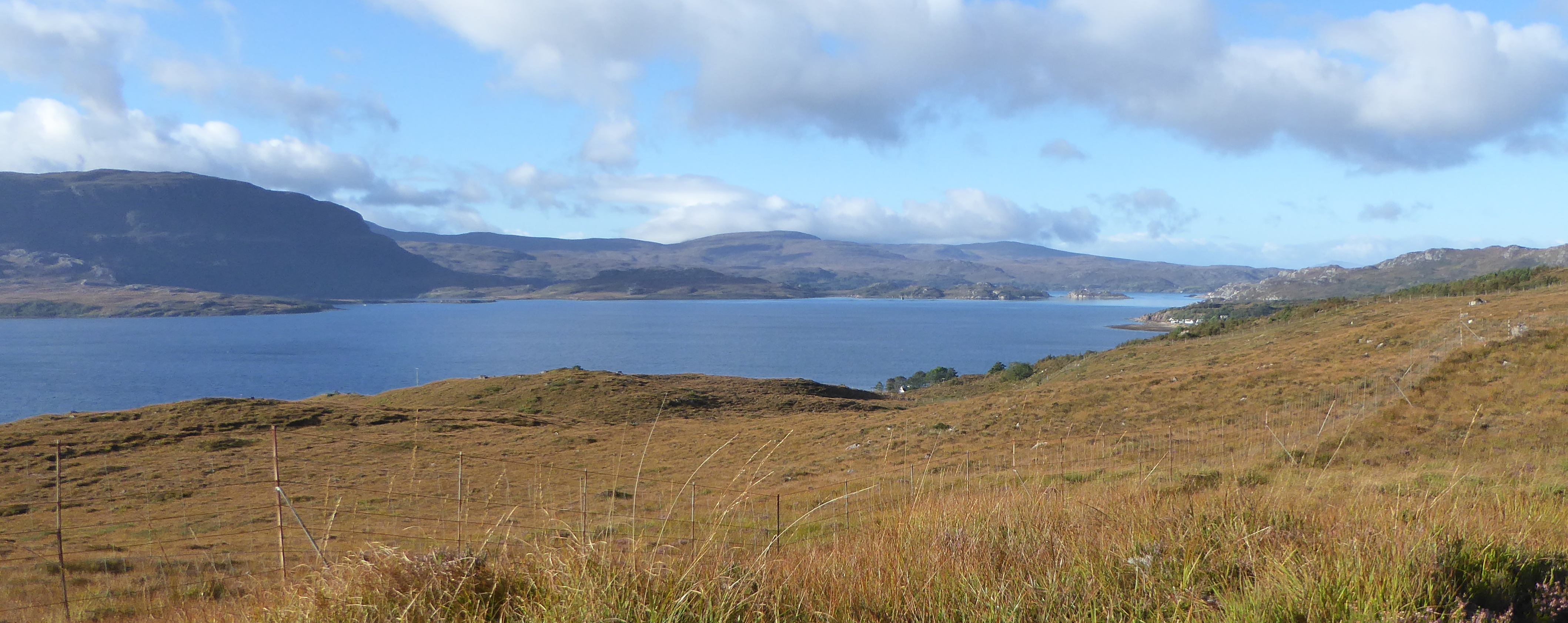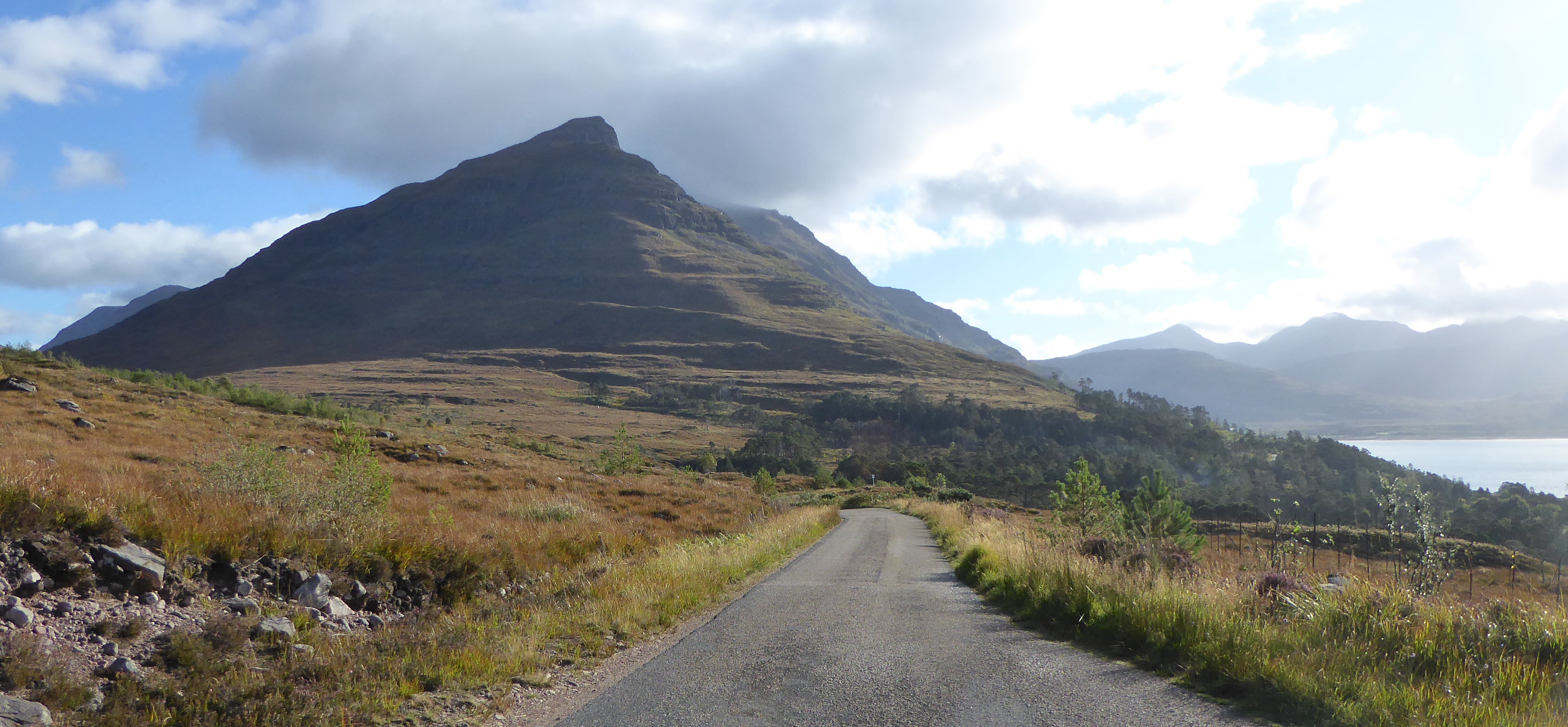Another hamlet is Inveralligin with a scattering of white houses along the shoreline.and a tiny pier. The old schoolhouse is now home to a Field Centre. I climb over Bealach na Gaoithe which means “Pass of the Winds” with fine views over Loch Torridon and the hills of Glenshieldaig and Applecross Forest.