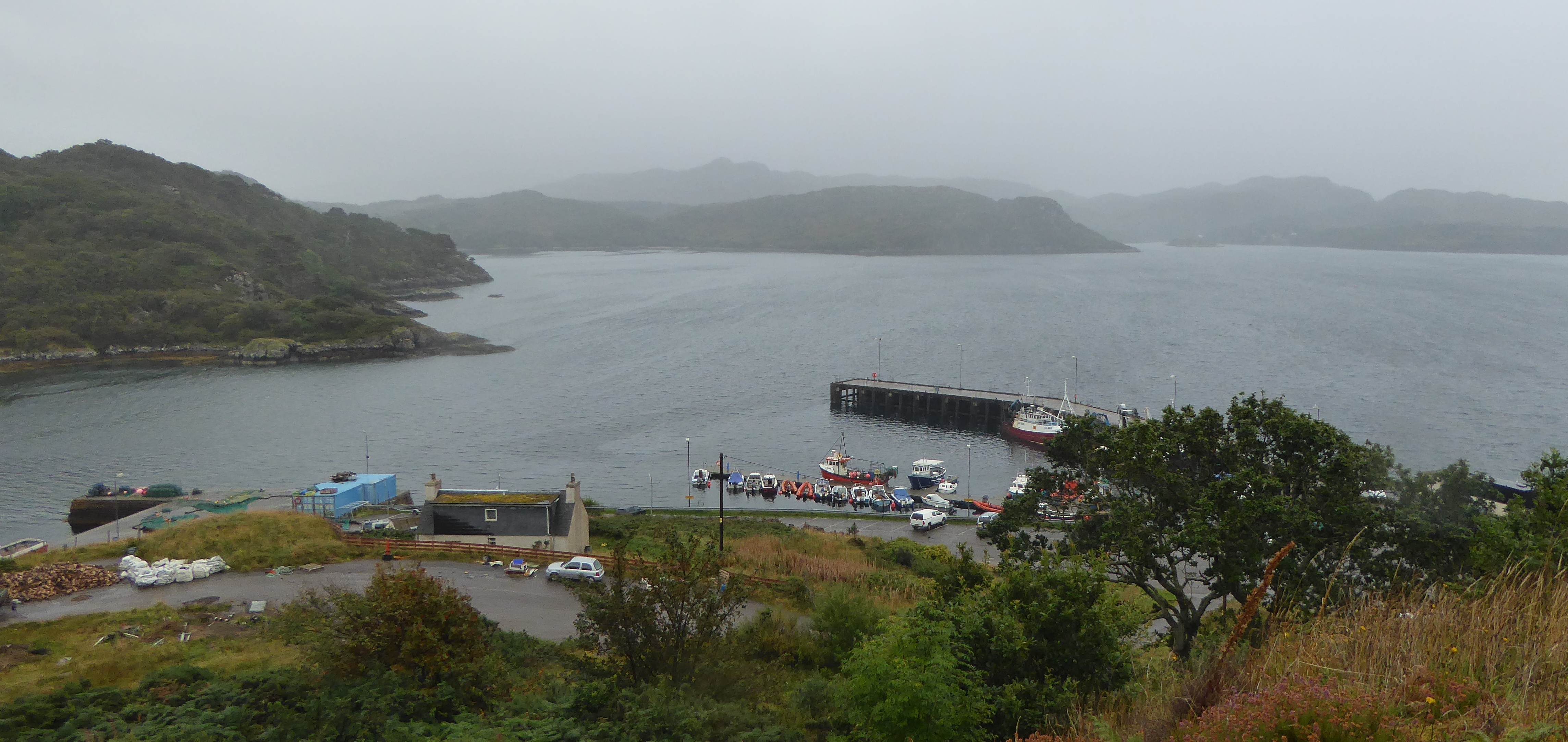 Another village is Badachro which lies on an inlet off Loch Gairloch and offers sheltered mooring for boats. Many of the boats lie on the grassy slopes up from the waters edge. During the height of the fishing industry cod was brought here to be dried out before being shipped to Europe