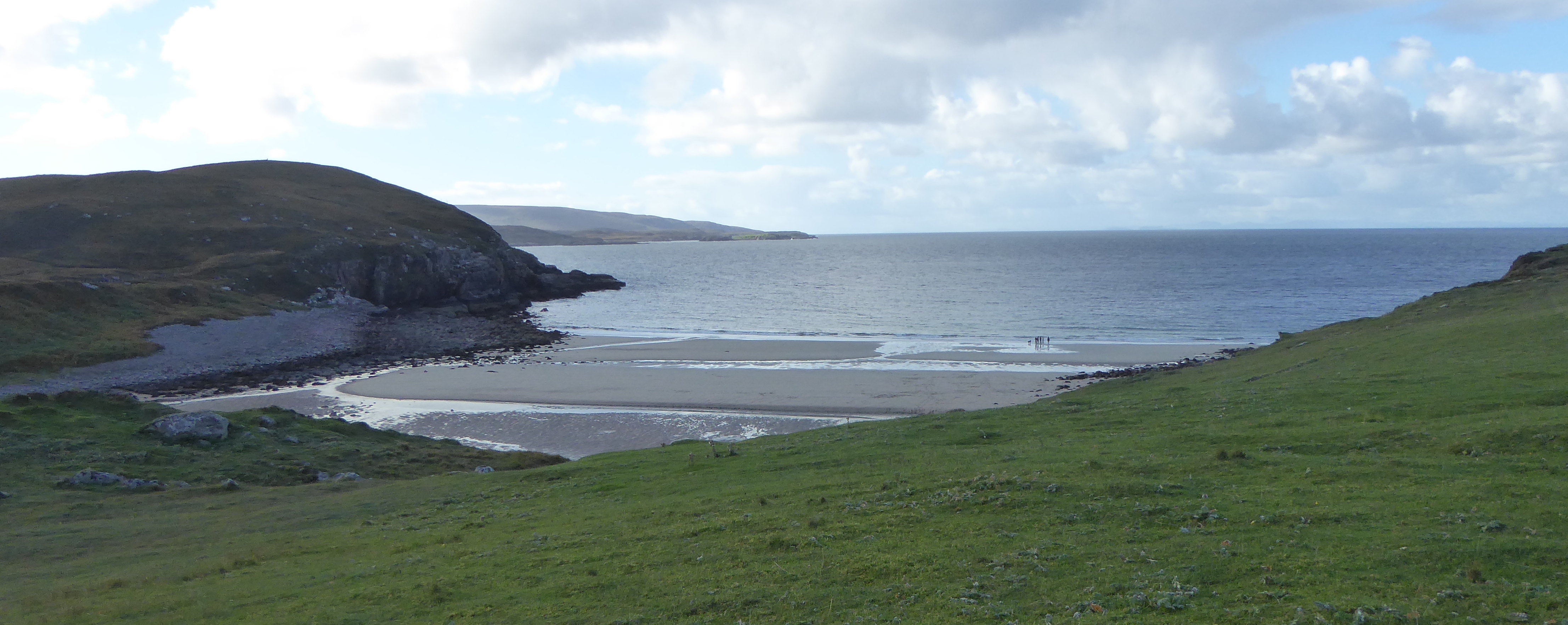 I follow a track and make my way across the stoney hillside to Slaggan Bay with a lovely sandy beach. It used to be a crofting village but there just remains the gable ends of the home of the last family that lived there.
