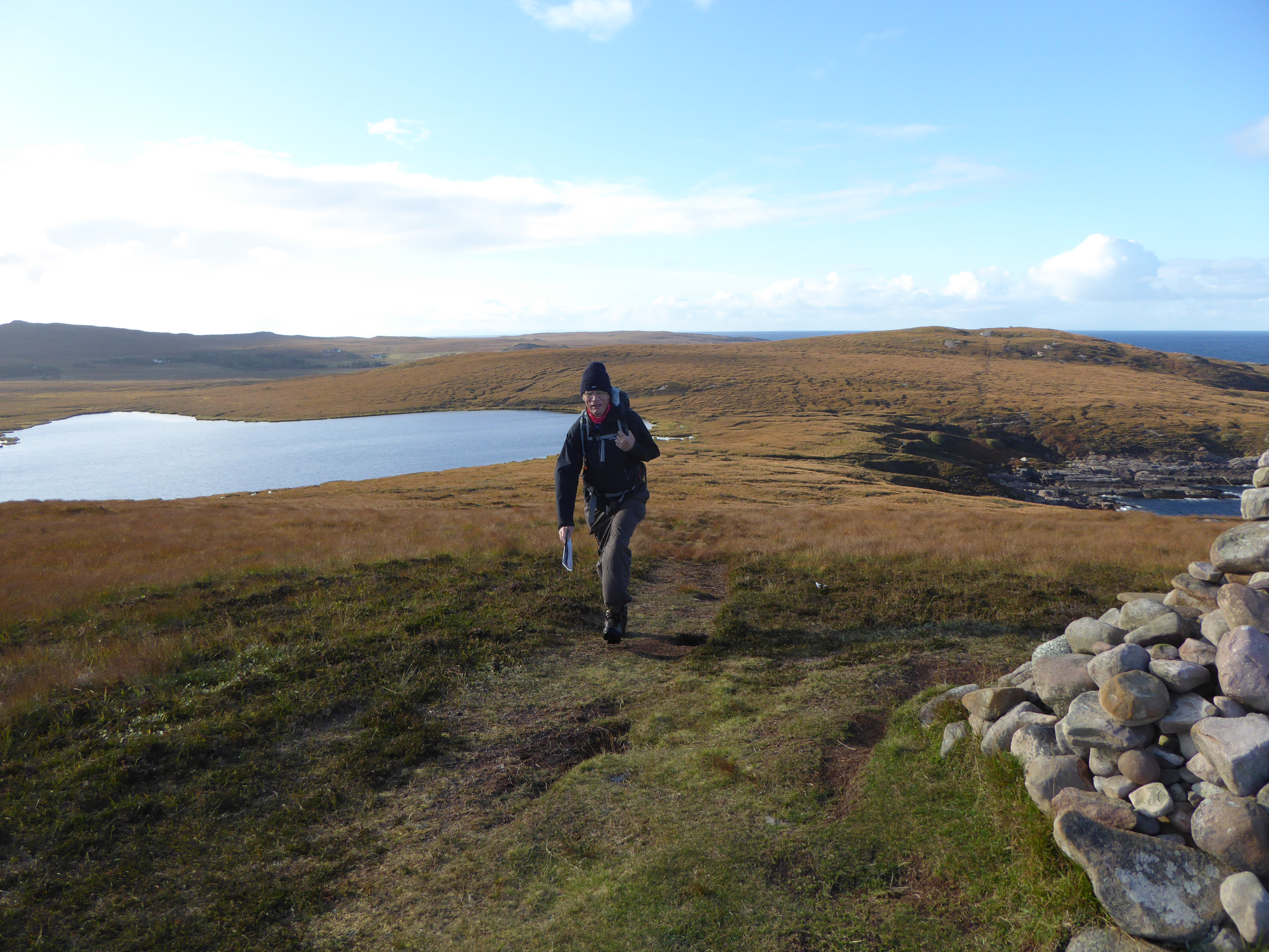 There is a good track that takes me to the road into Mellon Udrigle with its white sandy shell beach known as Camas a’Charraig, I do a loop around the headland and meet up with my sister and brother-in-law at the top of Meall Leac an Fhaobhair. We take a few moments to savour the views, take a few photographs and watch the ferry on its way to Stornaway.
