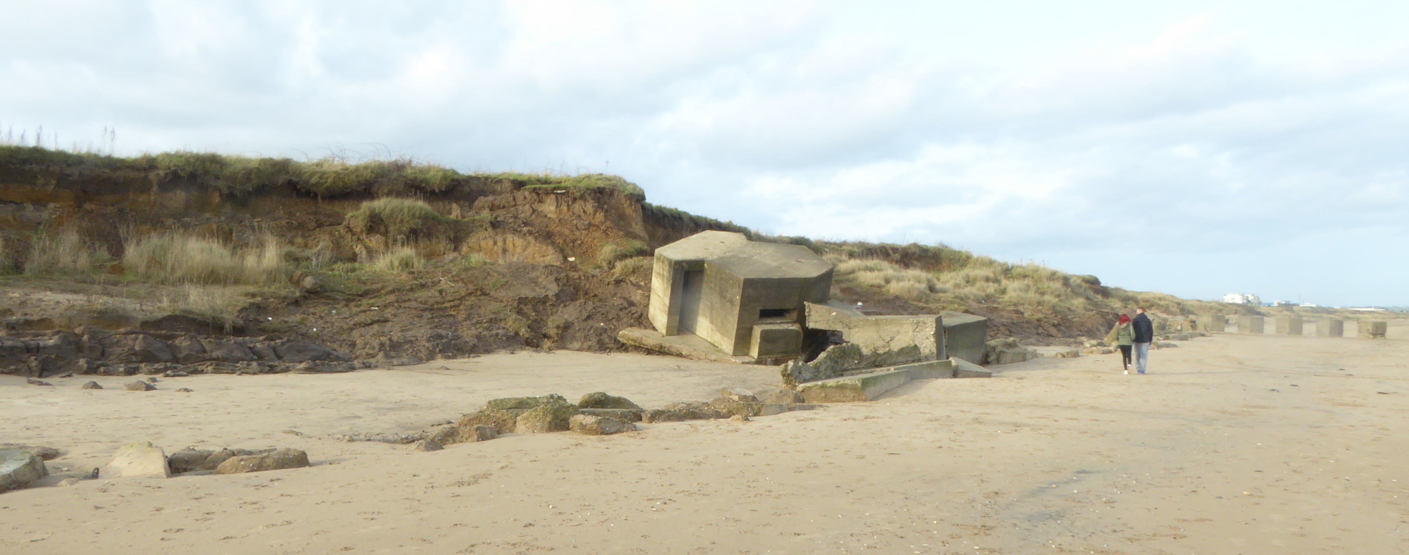 All along the beach from Bridlington past Fraisthorpe Sands, the beach is littered with concrete tank defences and pill boxes that have fallen off the cliffs. There must have been concerns of this being a likely location for an invasion during the war.